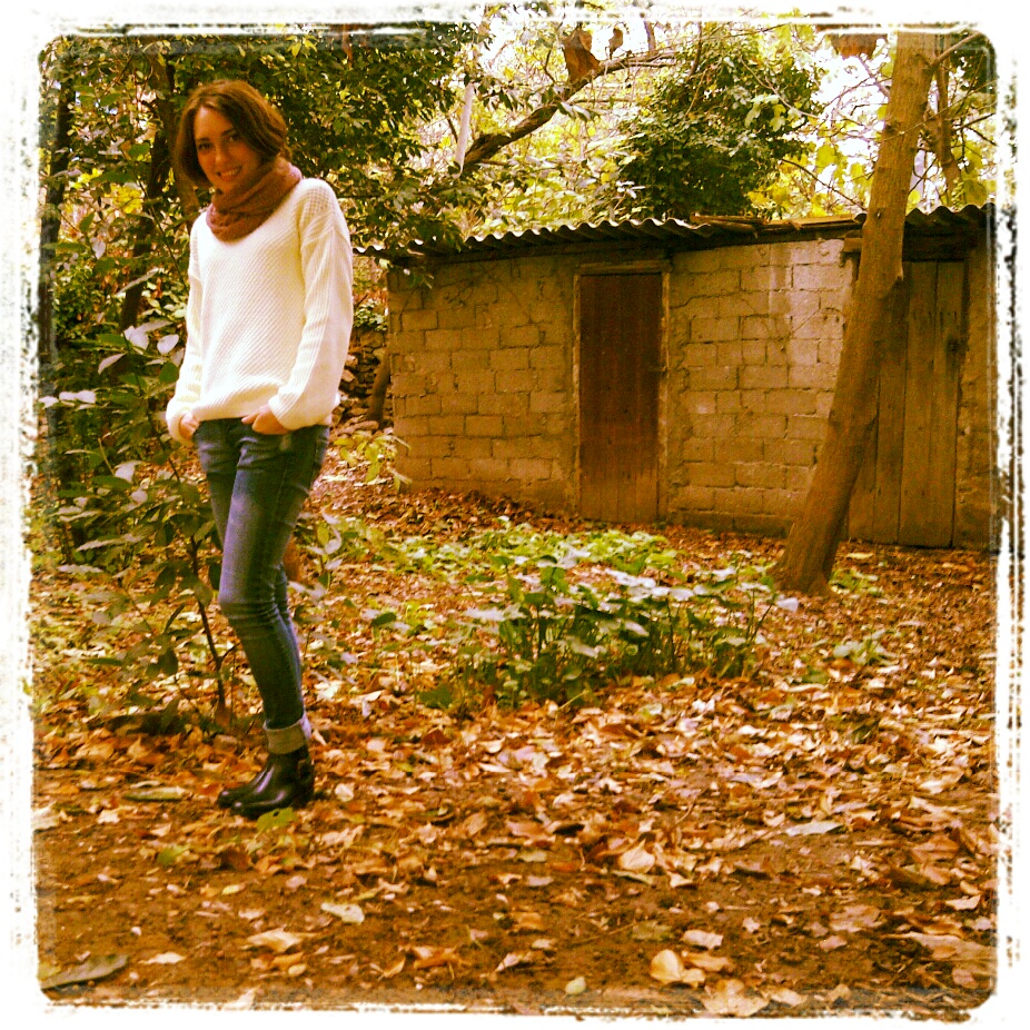 Bugün ne giydiğime gelecek olursak; sımsıcak bir kırık beyaz kazak ve skinny jeanlerle yağmur botlarımı kombinledim. Saçıma lütfen aldırış etmeyin, kendisi şu aralar uzama aşamasında olduğundan arada çok şekilsiz olabiliyor :)